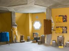 El interior se divide en distintas estancias. Una sala de proyección se encarga de hacer una introducción acerca del mundo de las abejas y su importancia como garantes de la biodiversidad del entorno medioambiental.