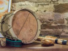 También la artesanía, con una muestra de instrumentos musicales entre los que destaca la gaita de dos agujeros del tamborilero que se muestra junto a castañuelas y el tambor.