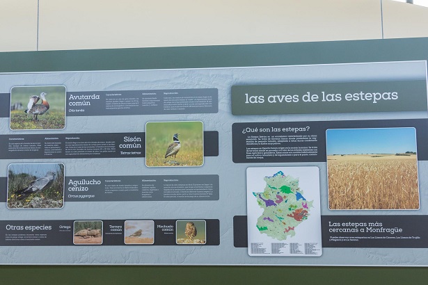 A través de mapas se facilita información sobre dónde avistar las distintas especies y mediante paneles se explica qué comen, cómo anidan, costumbres, curiosidades...